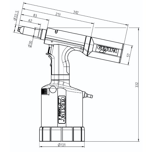 Setzt Blindniete bis 6,4 mm Ø aller Werkstoffe und bis 8 mm Ø Alu (max. Dorn-Ø 4,5 mm).