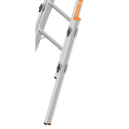 Verlängerung des Leiternholms mit einem Verstellbereich von 400mm für den Einsatz auf Treppen oder Podesten. Einfache Befestigung durch zwei groß dimensionierte Flügelschrauben.