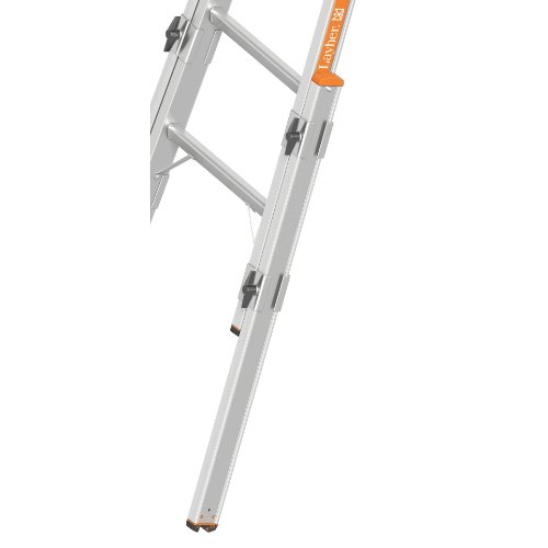 Verlängerung des Leiternholms mit einem Verstellbereich von 400mm für den Einsatz auf Treppen oder Podesten. Einfache Befestigung durch zwei groß dimensionierte Flügelschrauben.