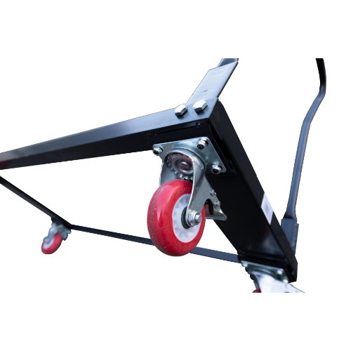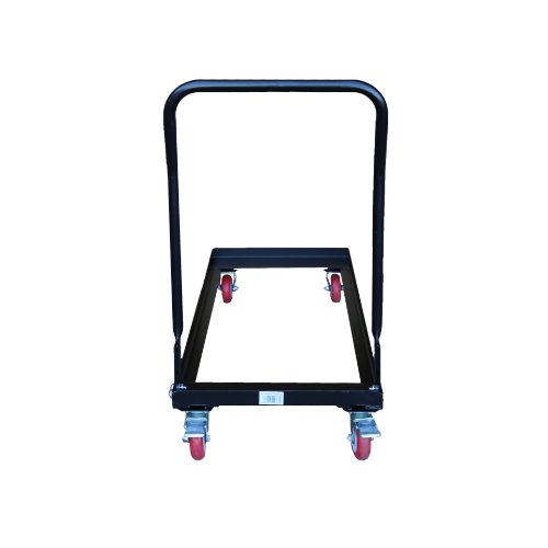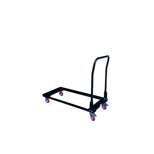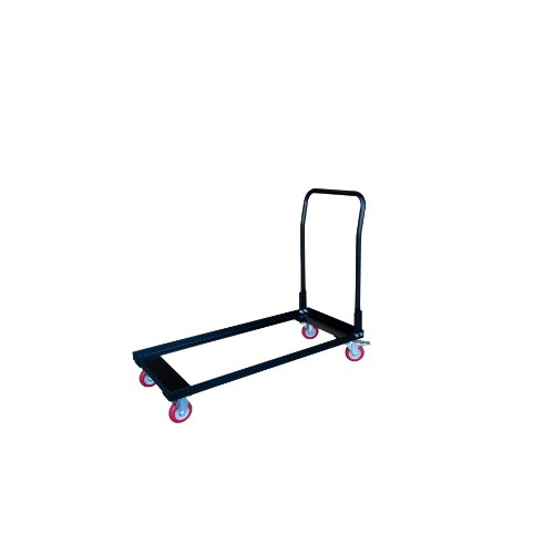 Transportwagen für bis zu 70 Klappstühle, mit Schiebebügel. Stahlrohr Ø 40 x 1,2 mm, pulverbeschichtet in schwarz, mit Kunststoffstopfen.
