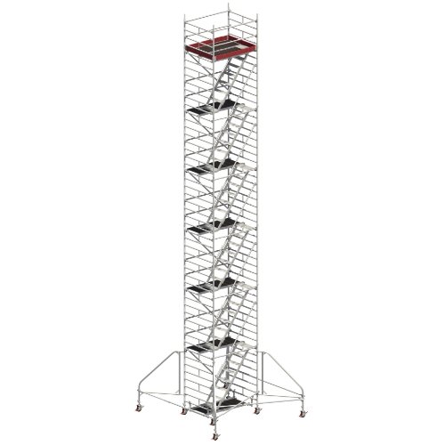 Das Uni Komfort ist ein kompaktes Gerüst mit Treppenaufstieg, ideal für Wartungsarbeiten. Der bequeme Treppenaufstieg mit durchgehendem Handlauf begünstigt vermehrtes Auf- und Absteigen, er überbrückt leicht große Höhen und lässt die Hand frei zur Mitnahme von Werkzeug und Material.