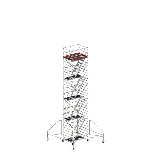 Das Uni Komfort ist ein kompaktes Gerüst mit Treppenaufstieg, ideal für Wartungsarbeiten. Der bequeme Treppenaufstieg mit durchgehendem Handlauf begünstigt vermehrtes Auf- und Absteigen, er überbrückt leicht große Höhen und lässt die Hand frei zur Mitnahme von Werkzeug und Material.