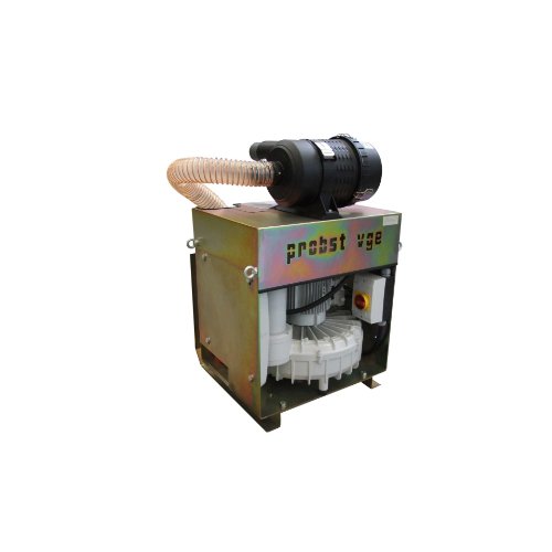 Stabilem, kompaktes Schutzgehäuse zur Wand- und Bodenbefestigung. Leistungsstarkes Vakuum-Gebläse Super Blower mit Drehstrommotor, 3 Phasen, für maximalen Unterdruck 520 mbar. Großvolumiger Staubfilter mit Vorabscheider für rauhe Einsatzbedingungen im Baustoffbereich, inklusive Filterpatrone. Mit Motorschutzschalter, Druckbegrenzungsventil und Steckeranschluss Cekon 32 A mit integriertem Phasenwender.