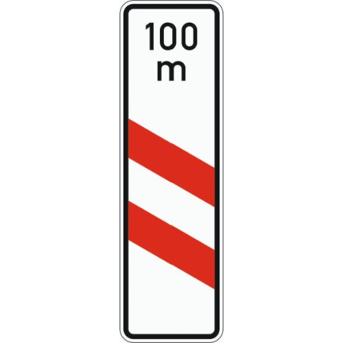 - VZ 159-21 zweistreifige Bake mit Entfernungsangabe, Aufstellung links
