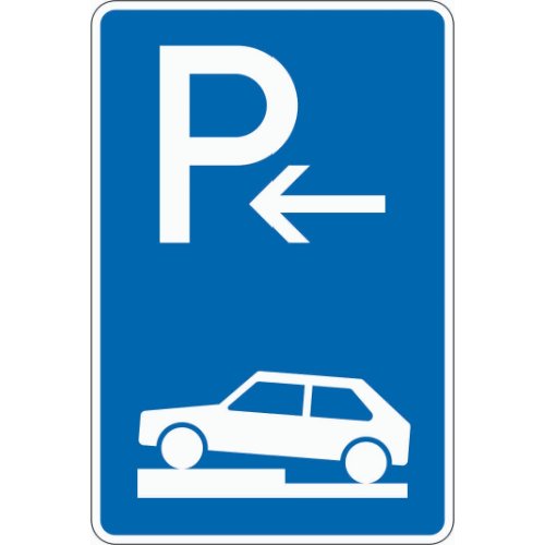 - VZ 315-71 Parken auf Gehwegen, halb quer zur Fahrtrichtung links Anfang