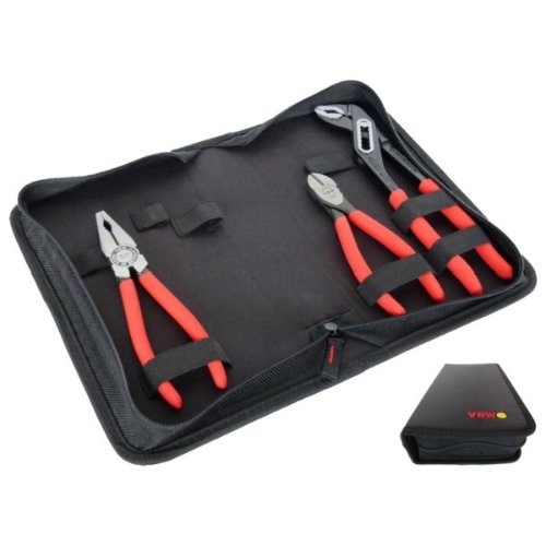 • Sortiment in hochwertiger Gewebetasche 1x 966166 Wasserpumpenzange, 250 mm, verchromt; 1x 545610 Kombizange, 180 mm; 1x 587615 Seitenschneider, 160 mm
